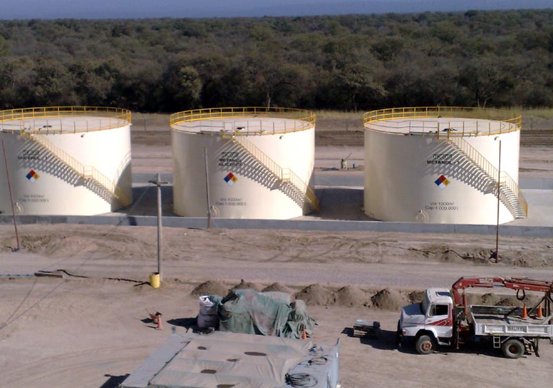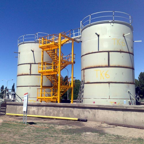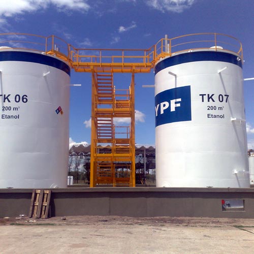Tanques (2) con escalera Tipo Mina para almacenamiento de Etanol con una capacidad de 200 m3 cada uno para la Planta YPF Terminal Villa Mercedes, provincia de San Luis.