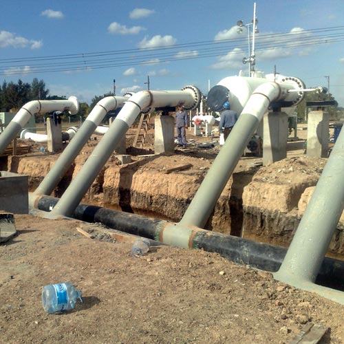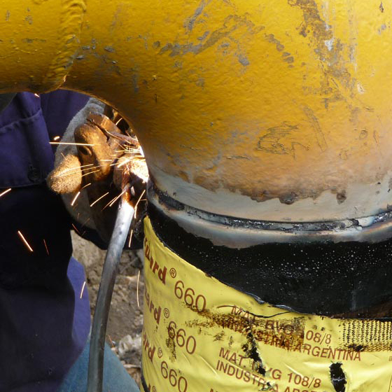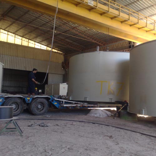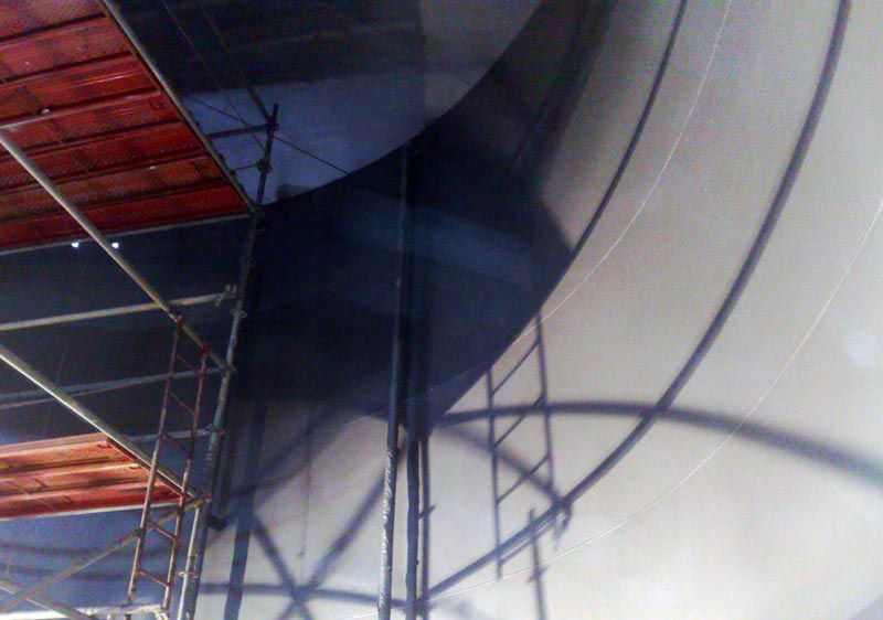 En el interior se realizó Granallado a grado SA3 y aplicación de 500 mic. De pintura Epoxy.
