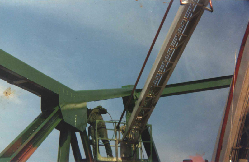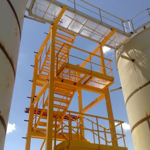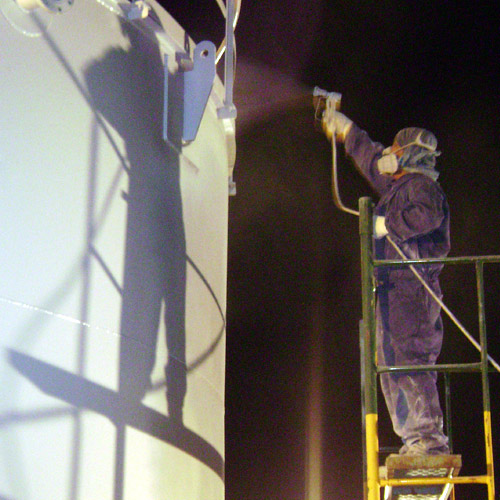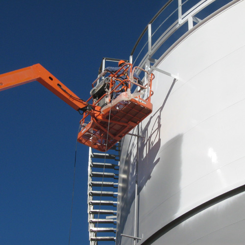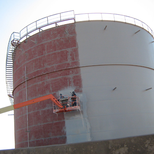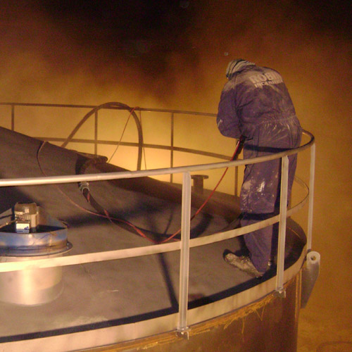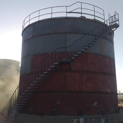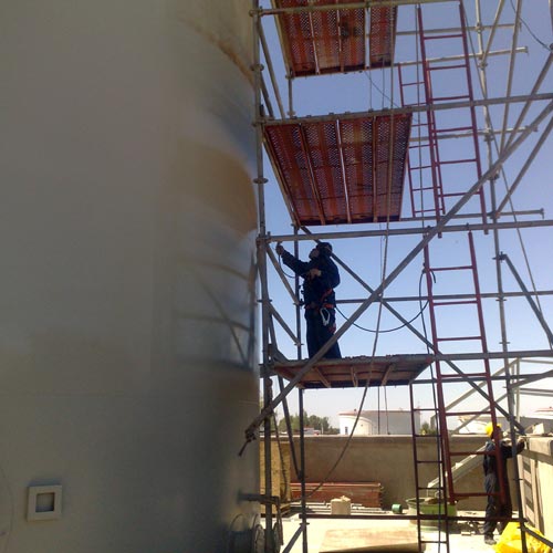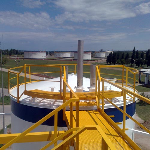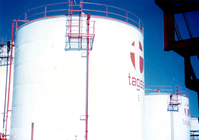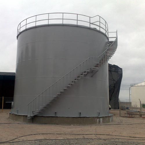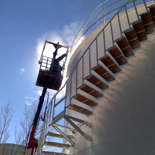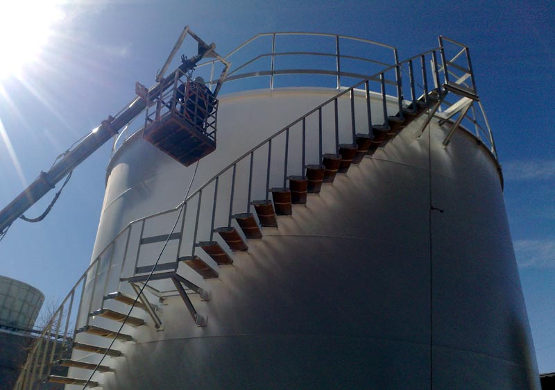 Tratamiento: Granallado de toda la superficie y posterior aplicación de esquema de pintura Hempel en Interior y Exterior de ambos tanques y escaleras y accesorios