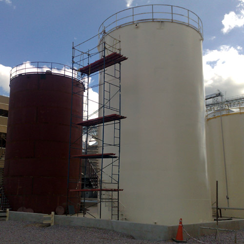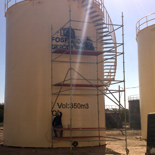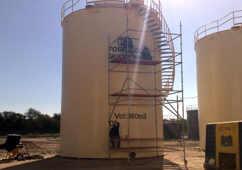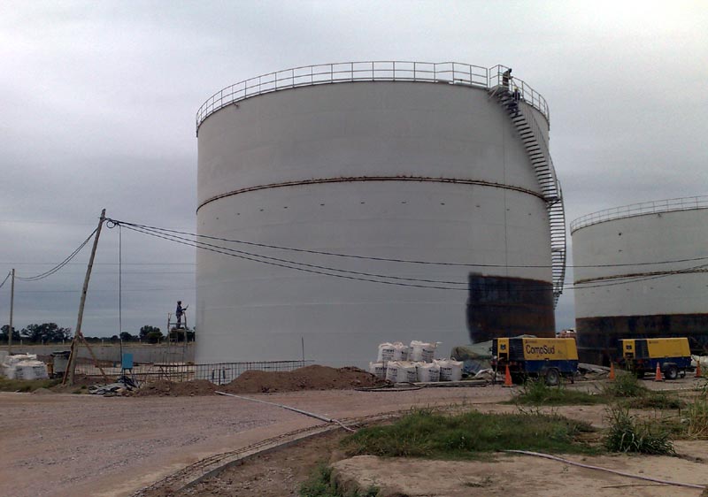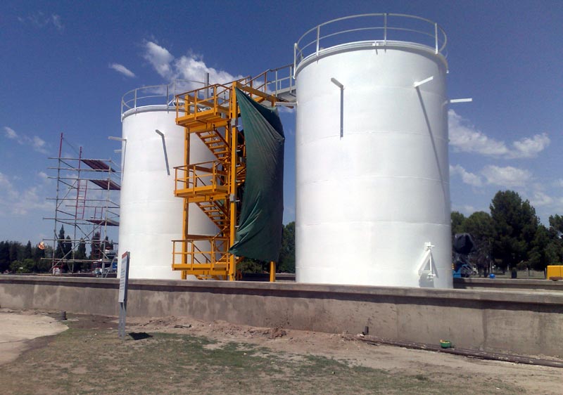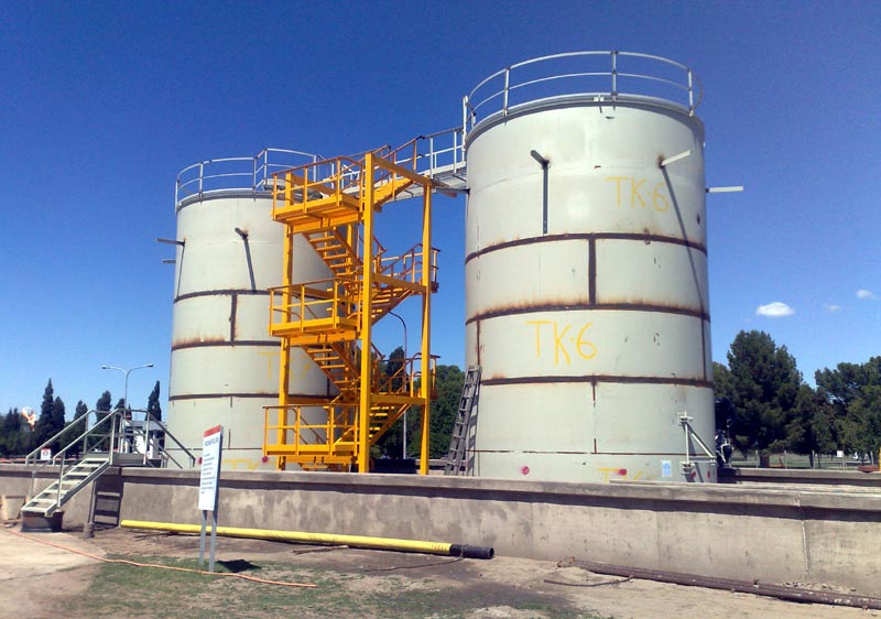 El Grupo LUCCI (Principal exportador de limones a nivel nacional entre otras actividades Ganaderas, Agropecuarias etc.) Nos encargo el tratamiento y la aplicaci�n de protecci�n anticorrosiva Interior y exterior a 15 Tanques de Almacenamiento de distintas Capacidades que oscilan entre 500 m3 y los 7000 m3 y entre 9 y 12 metros de Altura. Dichos Tanques ser�n utilizados para almacenar desde Productos inocuos hasta productos sumamente vol�tiles, necesarios para la Producci�n del nuevo Combustible.