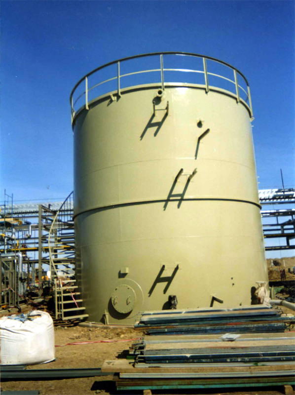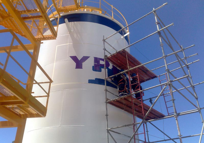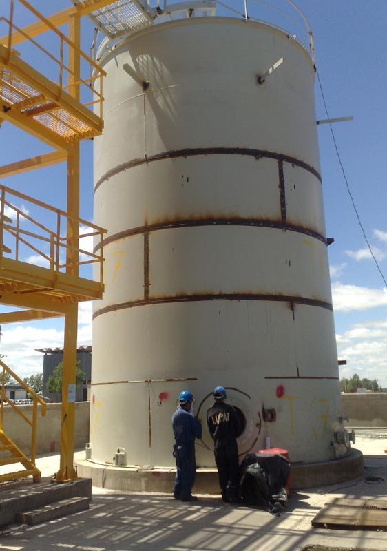 Tanque de Agua Desmineralizada: Tratamiento de Superficie y Posterior Aplicación de Esquema de Pintura exterior e interior del mismo. Tanque que será utilizado para alimentar las turbinas de ciclo combinado en la Planta de Energía en Loma de la Lata, provincia de Neuquén.
