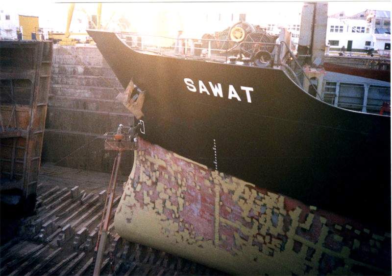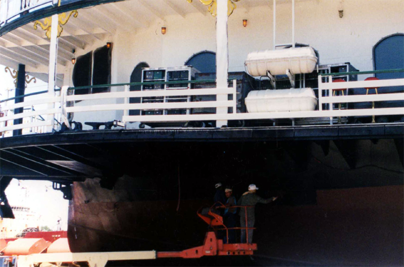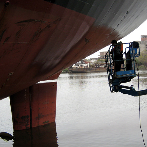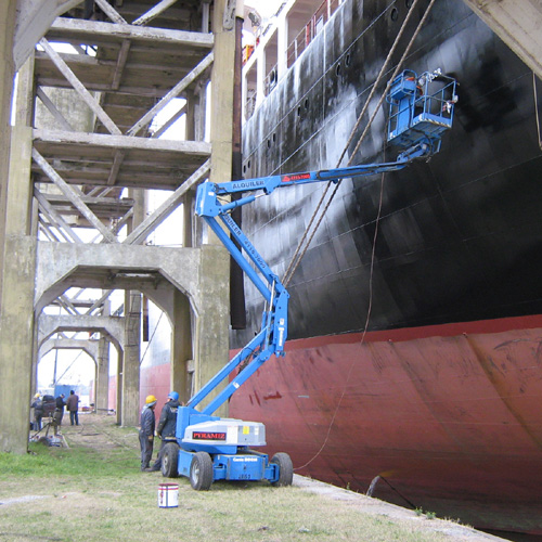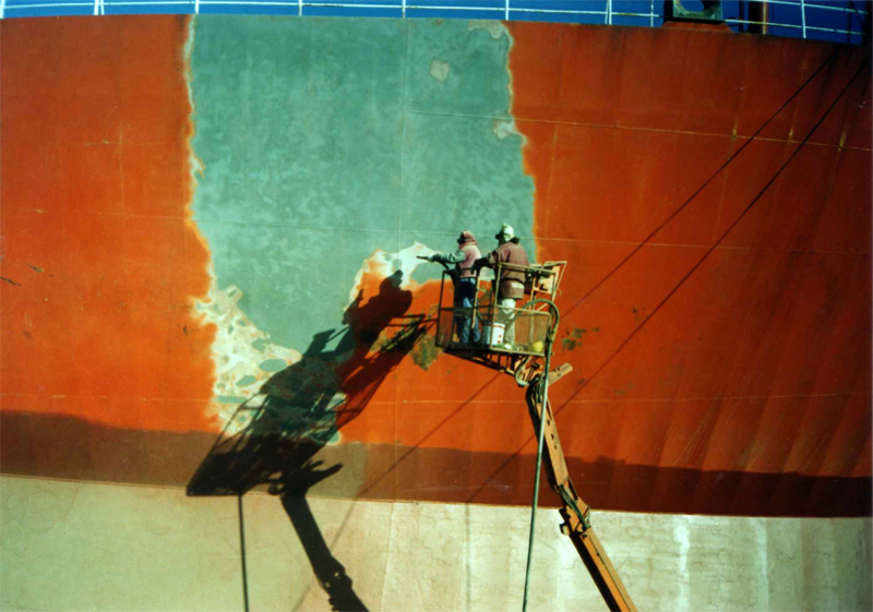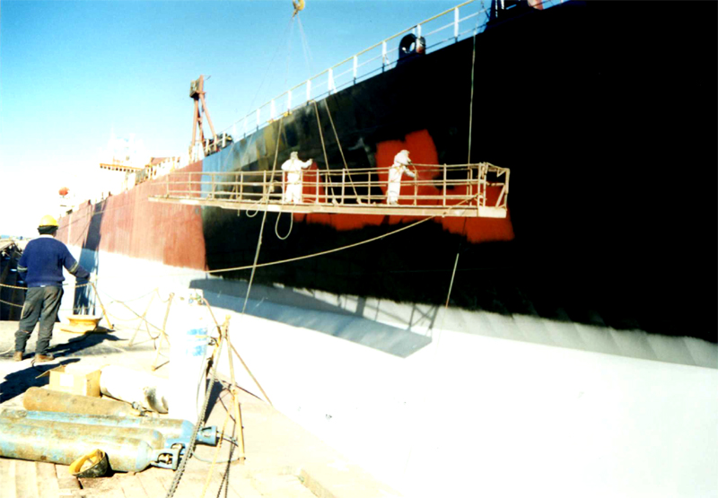Lavado a presión, arenado y pintado de casco en obra muerta hasta linea de flotación