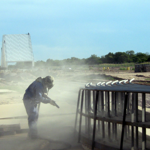 Exterior: granallado grado 2,5 y aplicación de Praimer 50 mic, una mano de Epoxy 100mic y una 2da. Mano de Poliuretano 50 mic.